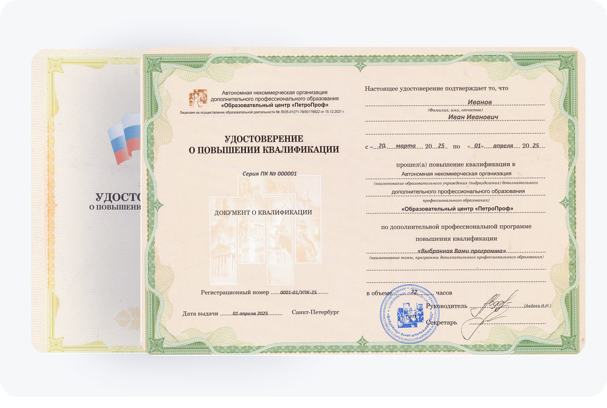 Удостоверение о повышении квалификации «Управление проектами» – основной документ, который вносим в реестр